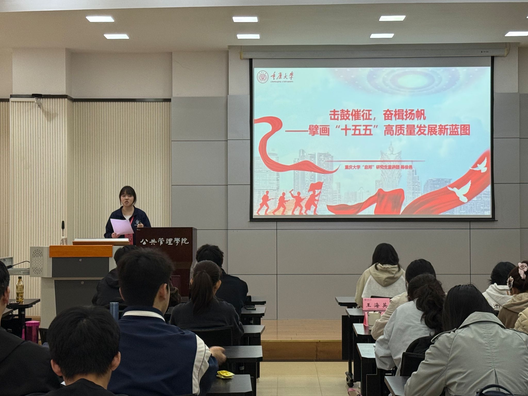 2025年11月14日13时,公共管理学院本科生二、三、五、六支部于学院楼102教室联合开展“学习贯彻党的二十届四中全会精神,锚定高质量就业谱写青春答卷”主题党日活动,特邀重庆大学“启邦”宣讲团成员陈俊邑担任主讲嘉宾。本次活动由三支部书记李庆主持,各支部全体党员和入党积极分子参加活动。会上,陈俊邑以“击鼓催征,奋楫扬帆——擘画‘十五五’高质量发展新蓝图”为核心,系统阐释党的二十届四中全会精神的核心要义,深入...