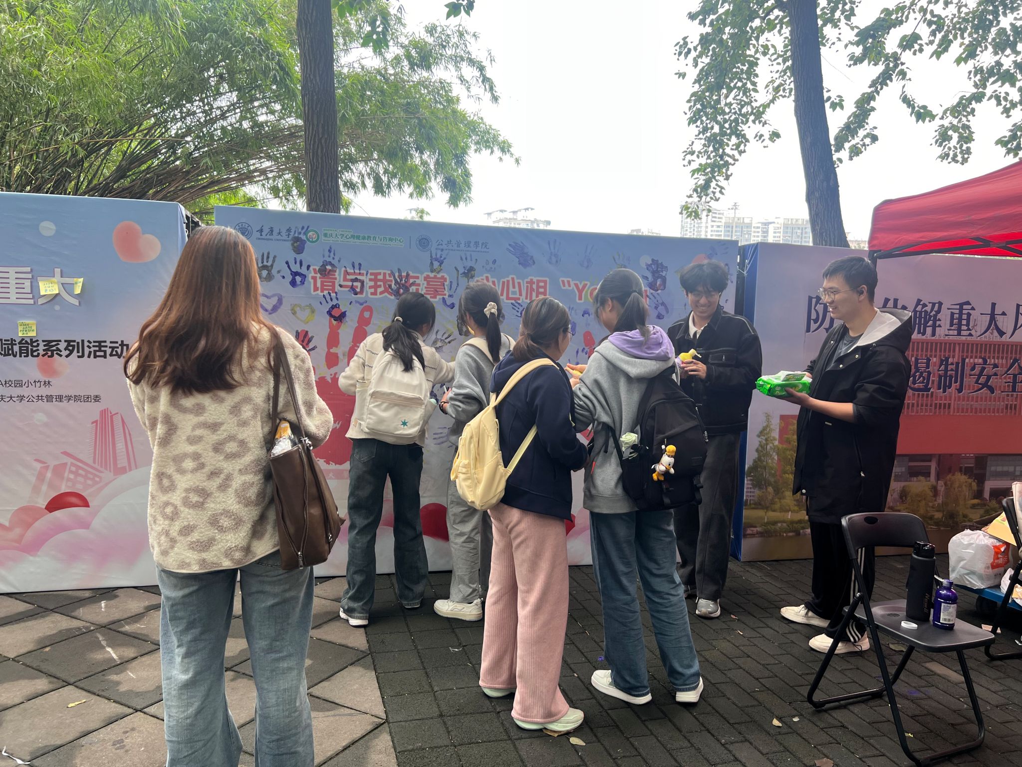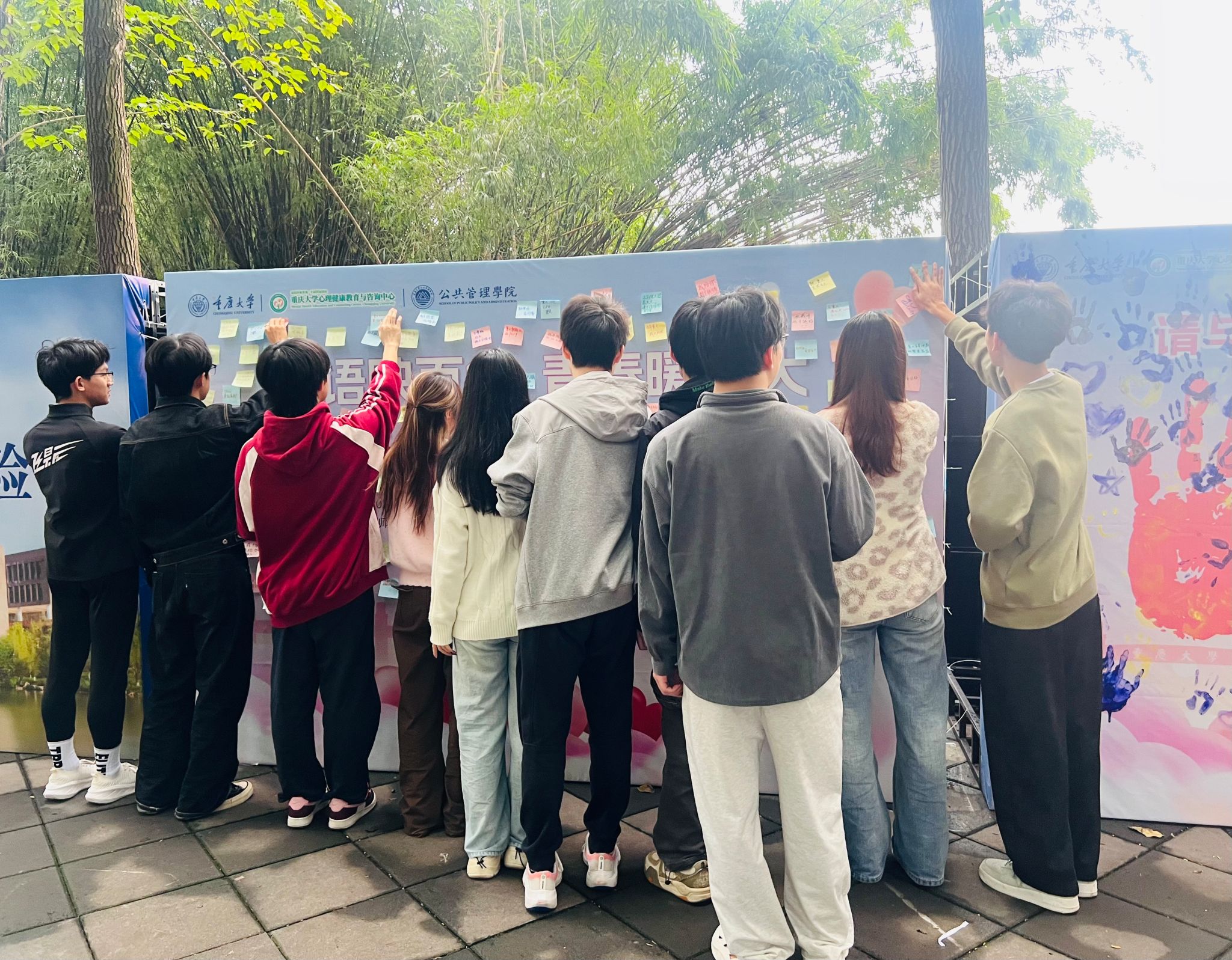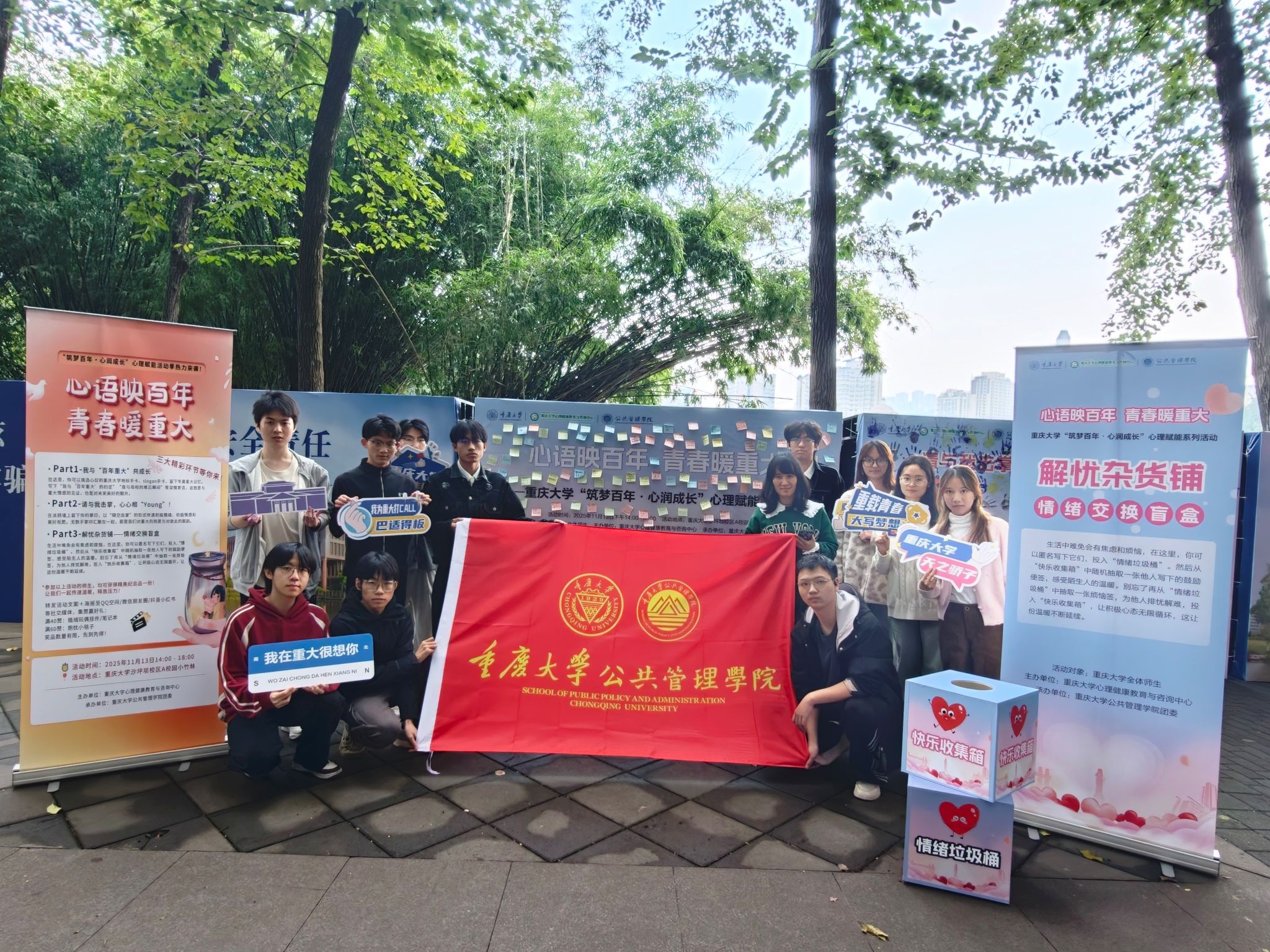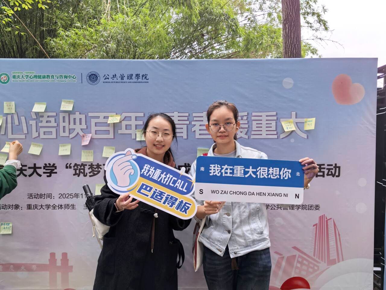 为深入贯彻《全面加强和改进新时代学生心理健康工作专项行动计划(2023—2025年)》要求,充分发挥心理健康教育活动的长效育人机制,营造积极健康、和谐温暖的校园文化氛围,2025年11月13日下午,由重庆大学心理健康教育与咨询中心主办、公共管理学院团委承办的“心语映百年,青春暖重大”心理赋能活动在沙坪坝校区A校园小竹林顺利举行。活动吸引了全校学生的积极参与,反响热烈。