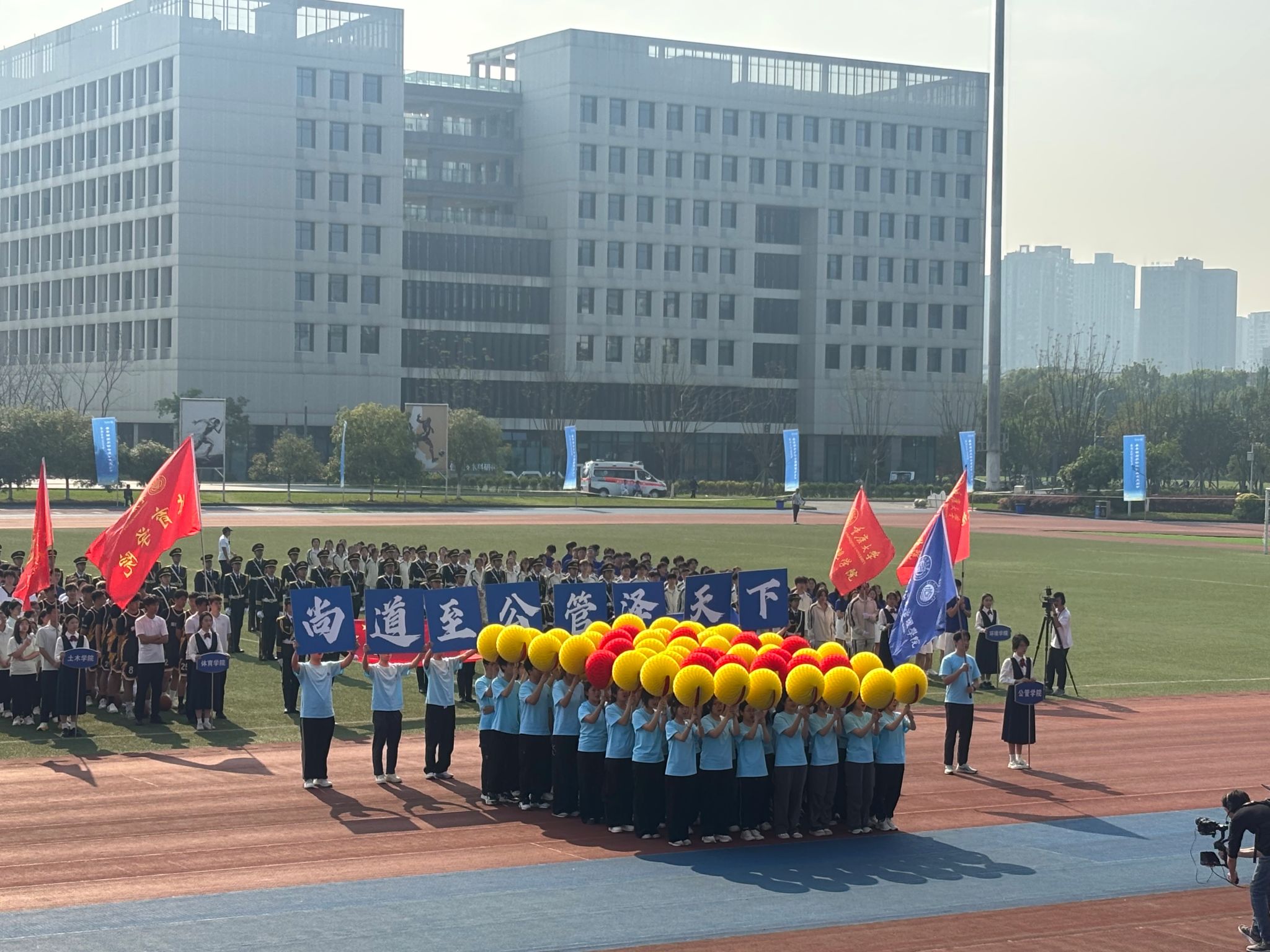 4月10日上午,运动会开幕式隆重举行。学院70余名同学组成的方阵精神抖擞、步伐整齐,以精准的手翻花造型拼出“公管”二字,铿锵有力地喊出“尚道至公,管泽天下”的院训口号。方阵队伍动作规范、气势昂扬,以饱满的状态完成展演,彰显出公管学子整齐有序、团结奋进的集体风采。