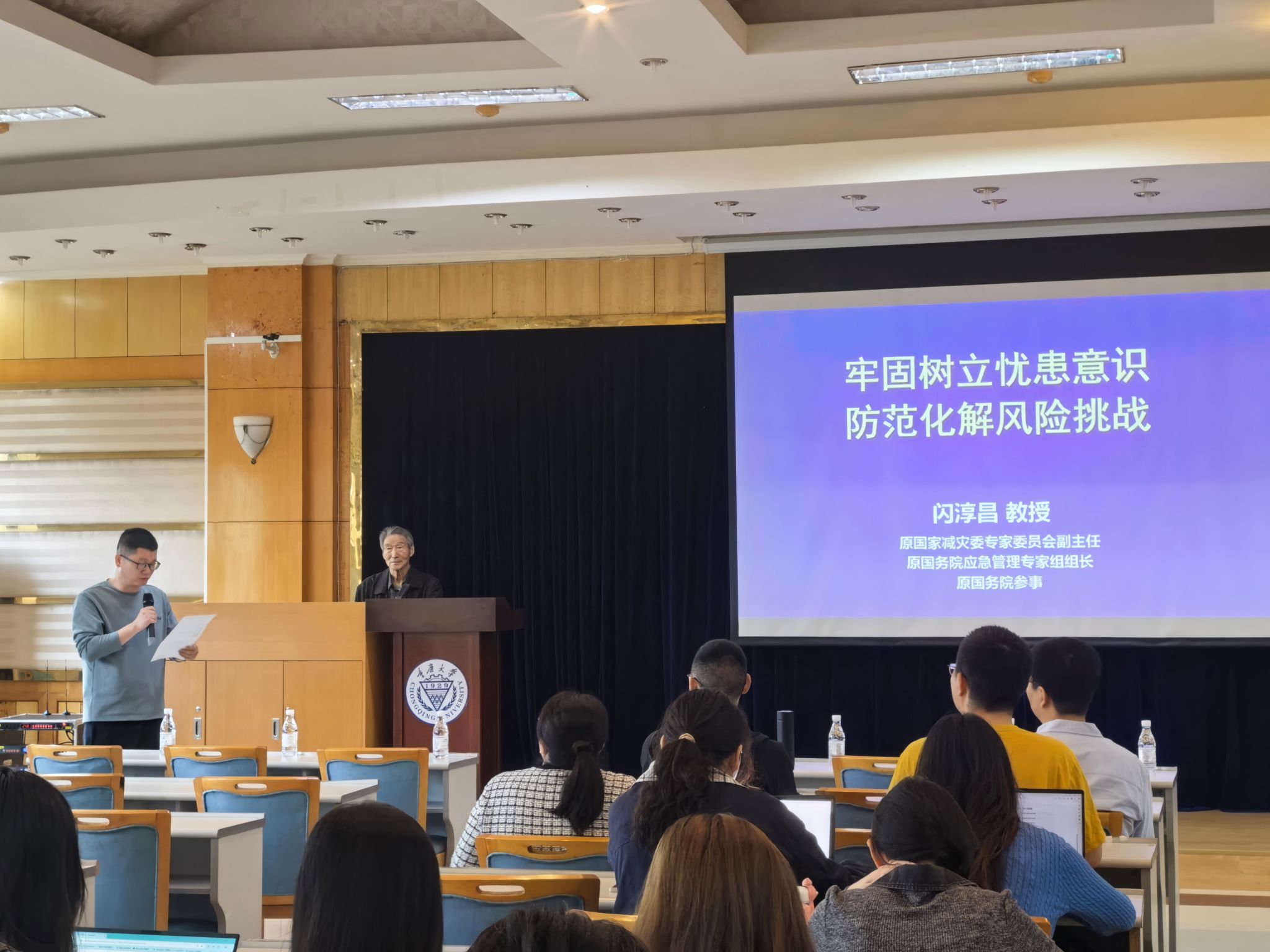 2026年4月10日,重庆大学公共管理学院成功举办“牢固树立忧患意识,防范化解风险挑战”学术讲座。本次讲座特邀原国务院参事、原国务院应急管理专家组组长、原国家减灾委专家委副主任、原国家安全监督管理局副局长闪淳昌教授担任主讲嘉宾,深入探讨新时代公共安全治理体系与能力现代化、风险防控、应急管理及全民安全素养建设等重大理论与实践问题。讲座由我院副院长王辉教授主持。