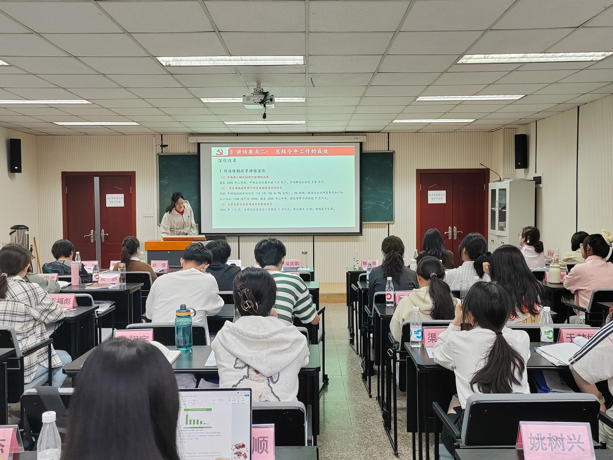 2025年10月13日13时,公共管理学院本科生一、四支部在学院楼106教室举行“样板支部新征程,凝心聚力助成长”之“学习习近平在庆祝中华人民共和国成立76周年招待会上的讲话”支部党员大会。本次活动深入学习贯彻习近平总书记在国庆招待会上的讲话精神,结合党史发展历程,明确新征程“十五五”规划战略意义。活动由本科生一支部书记王丽娟主持,本科生一支部党员冉静怡和许诺主讲,一、四支部全体党员、预备党员积极参与。