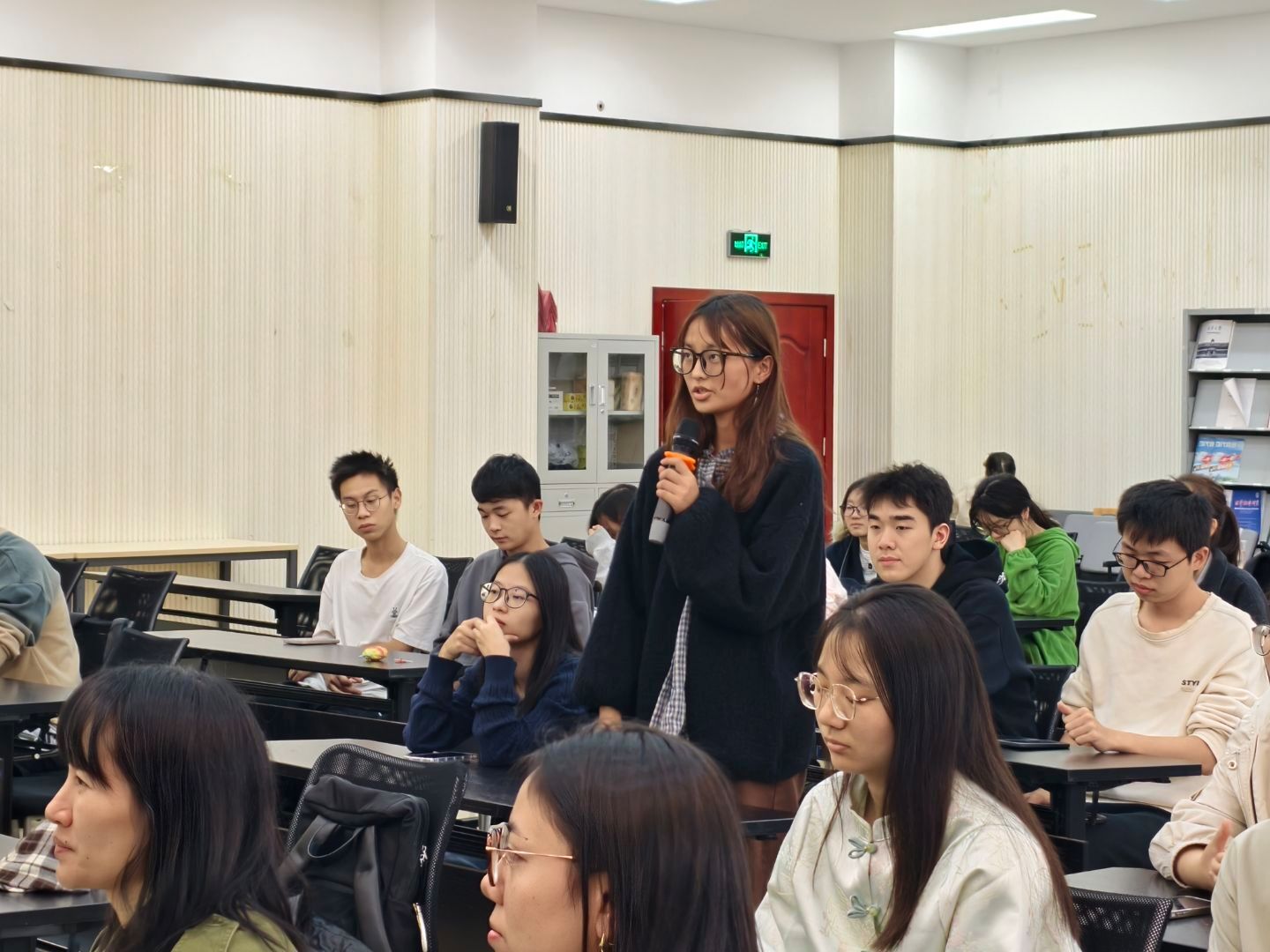 理论学习后,交流互动环节中,同学们结合国庆见闻分享民族团结故事。