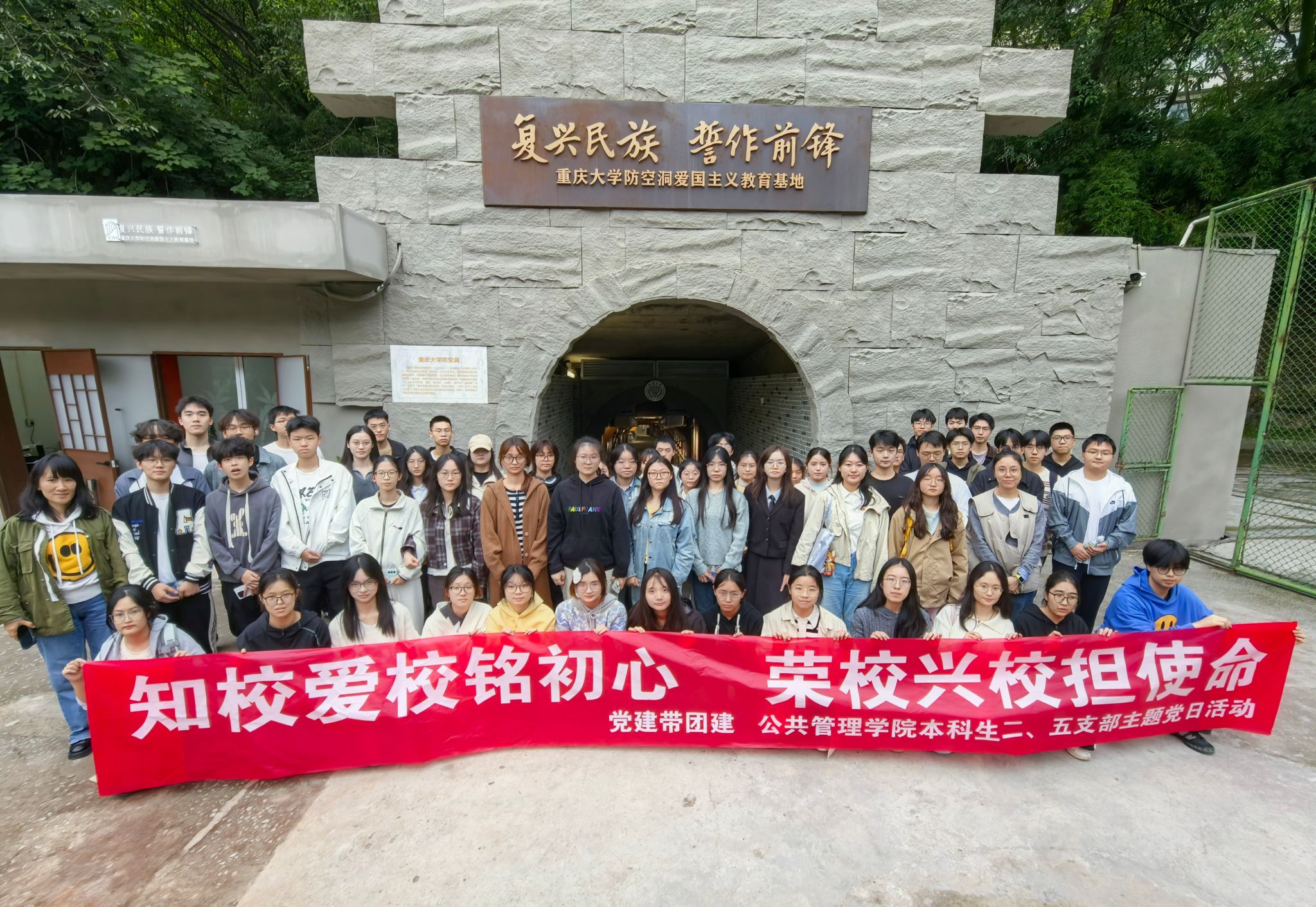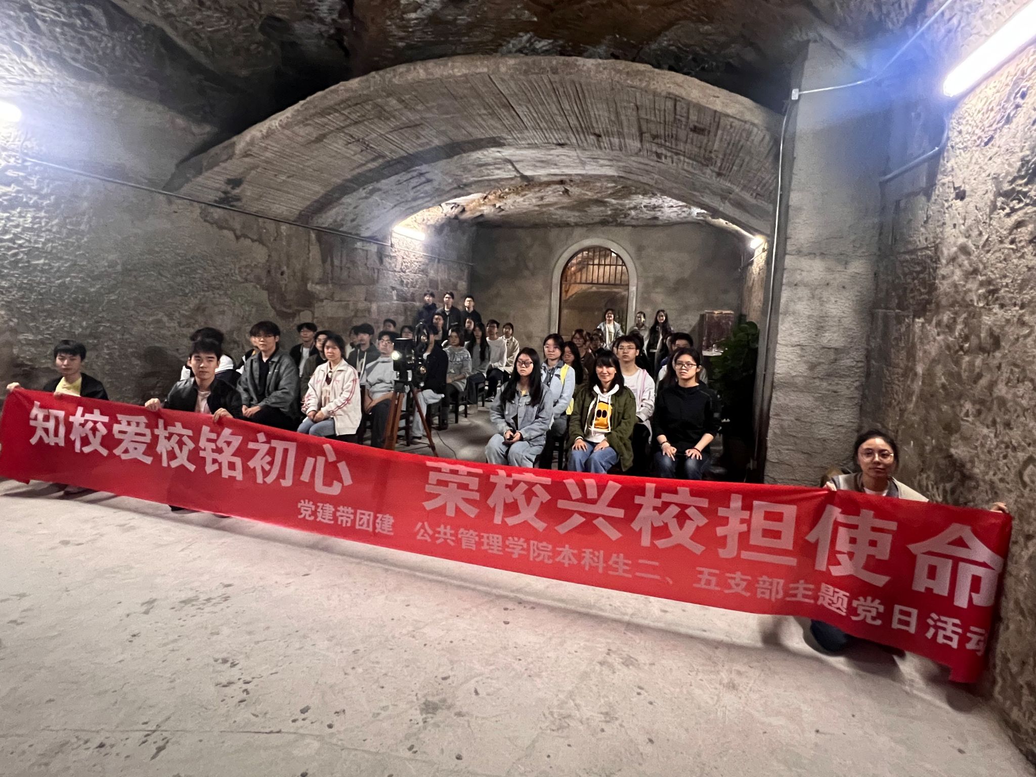 2025年10月30日下午,公共管理学院本科生二、五支部的党员与入党积极分子、本科2024级各团支部的30名团员青年代表,循着历史的足迹走进“复兴民族 誓作前锋”重庆大学防空洞爱国主义教育基地,一场以党建带团建“知校爱校铭初心,荣校兴校担使命”为主题的党日活动在此拉开帷幕。本科生二支部书记徐柳、五支部书记曹李思帆带队,全体成员一同在斑驳的历史印记中,开启了一场兼具校史学习与精神洗礼的特殊旅程。
