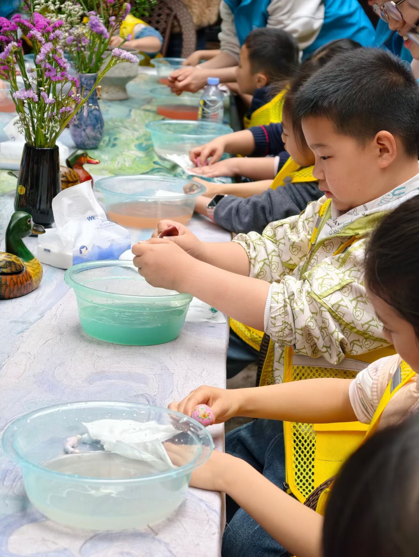 “你的葫芦好漂亮!”“我的葫芦是粉色的,好好看!”活动接近尾声时,小朋友们的葫芦纷纷成型,大家高高举起自己的作品,兴奋地展示成果,脸上满是开心的笑容。