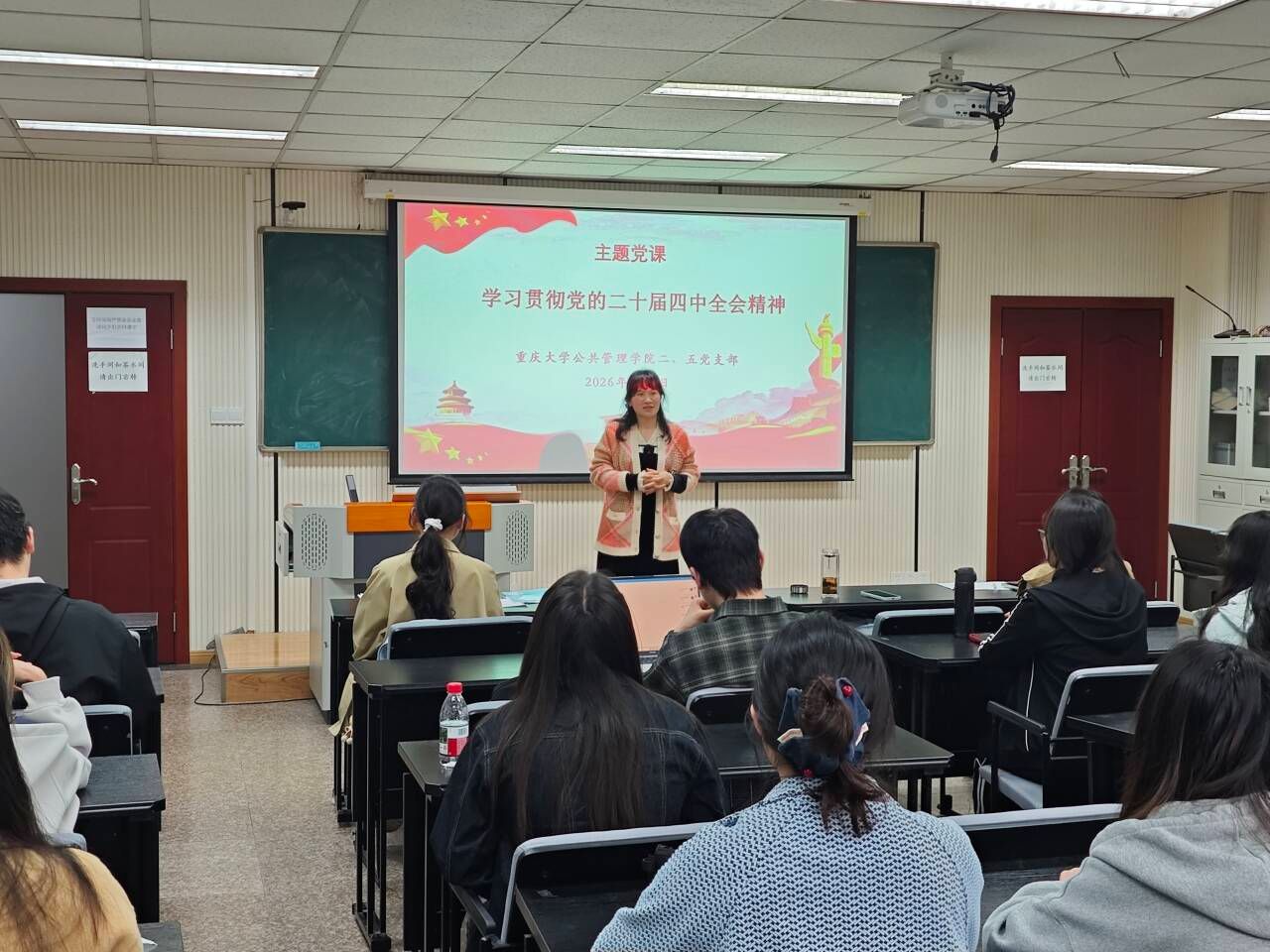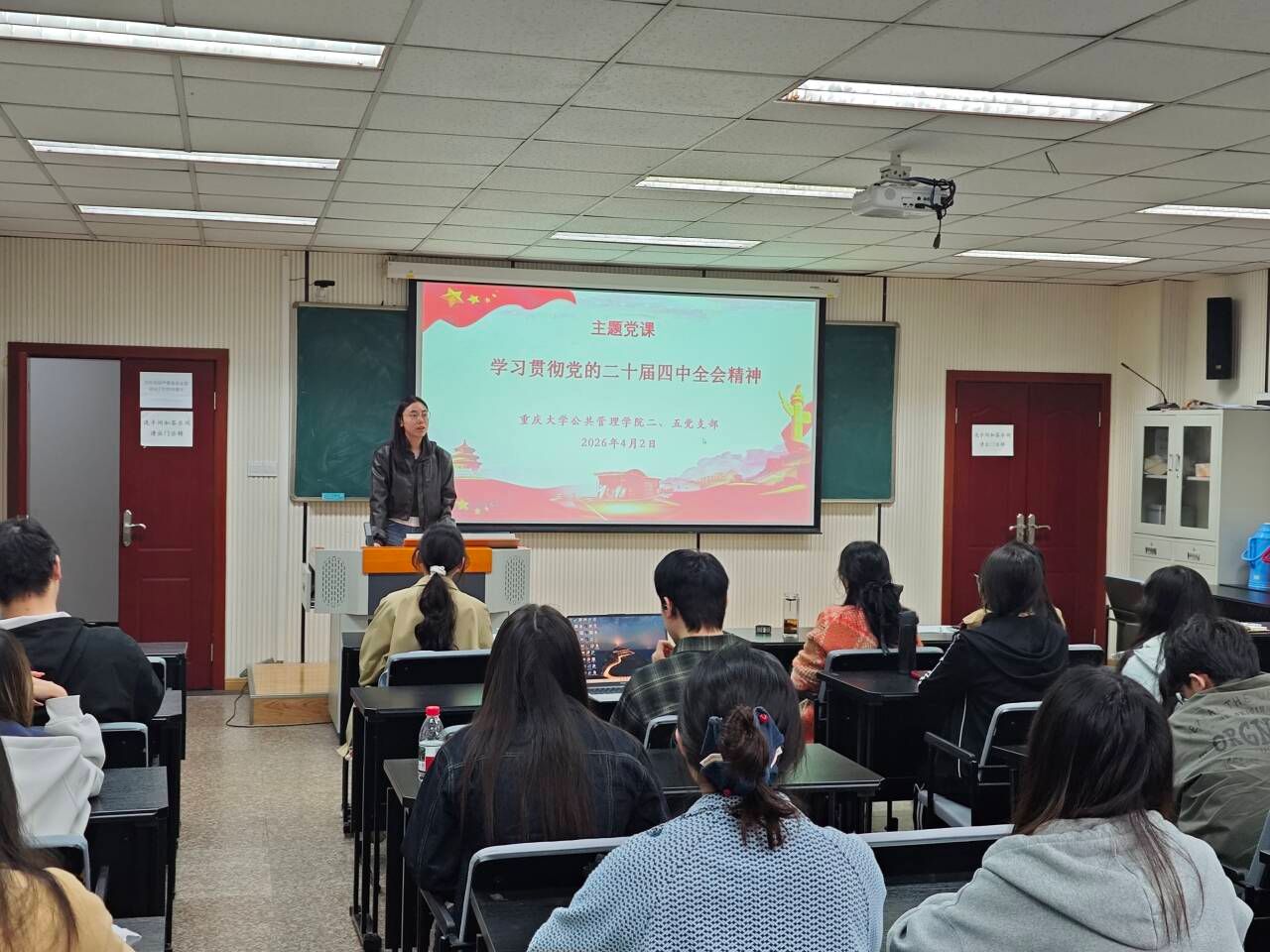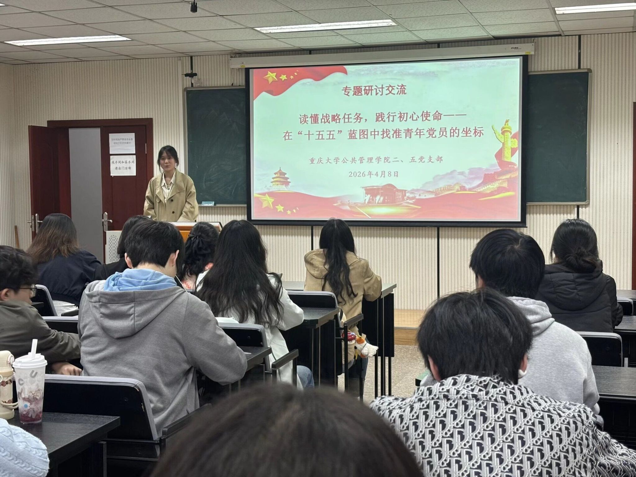 为深入学习贯彻党的二十届四中全会精神,准确把握“十五五”规划的战略部署,引导青年党员在国家发展蓝图中找准坐标、践行初心使命,2026年4月2日下午,公共管理学院本科生二、五支部在学院楼106教室联合开展集中学习与专题研讨活动,由二支部书记徐柳、五支部书记曹李思帆共同主持,两个支部全体党员及入党积极分子到场参加。