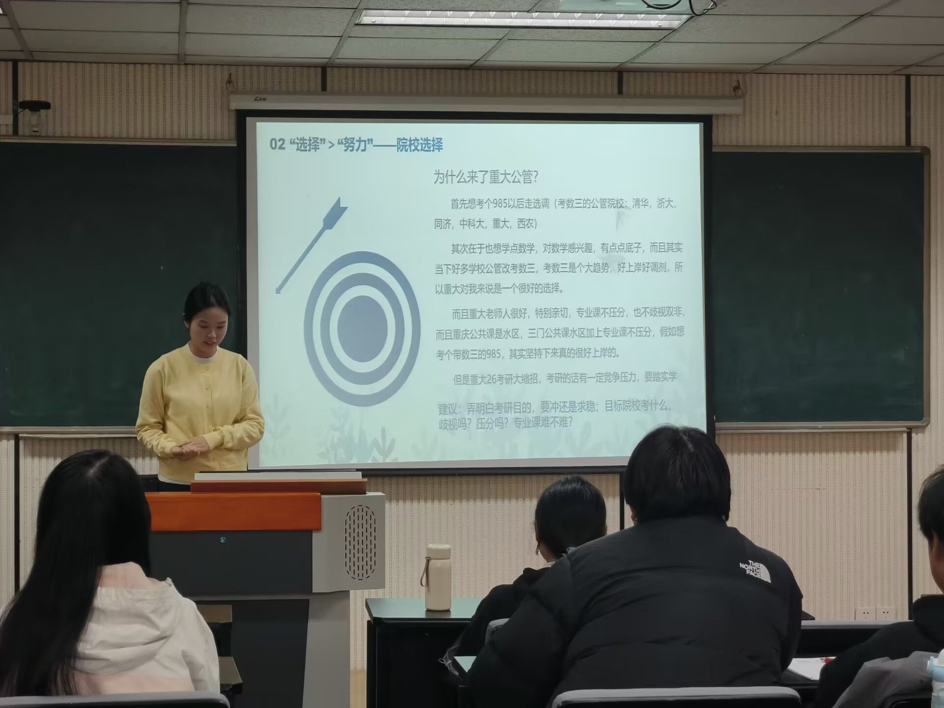 通过本次分享会,同学们不仅对考研全过程有了更清晰的认识,也收获了诸多实用的学习方法与备考策略,进一步增强了迎战考研的信心。