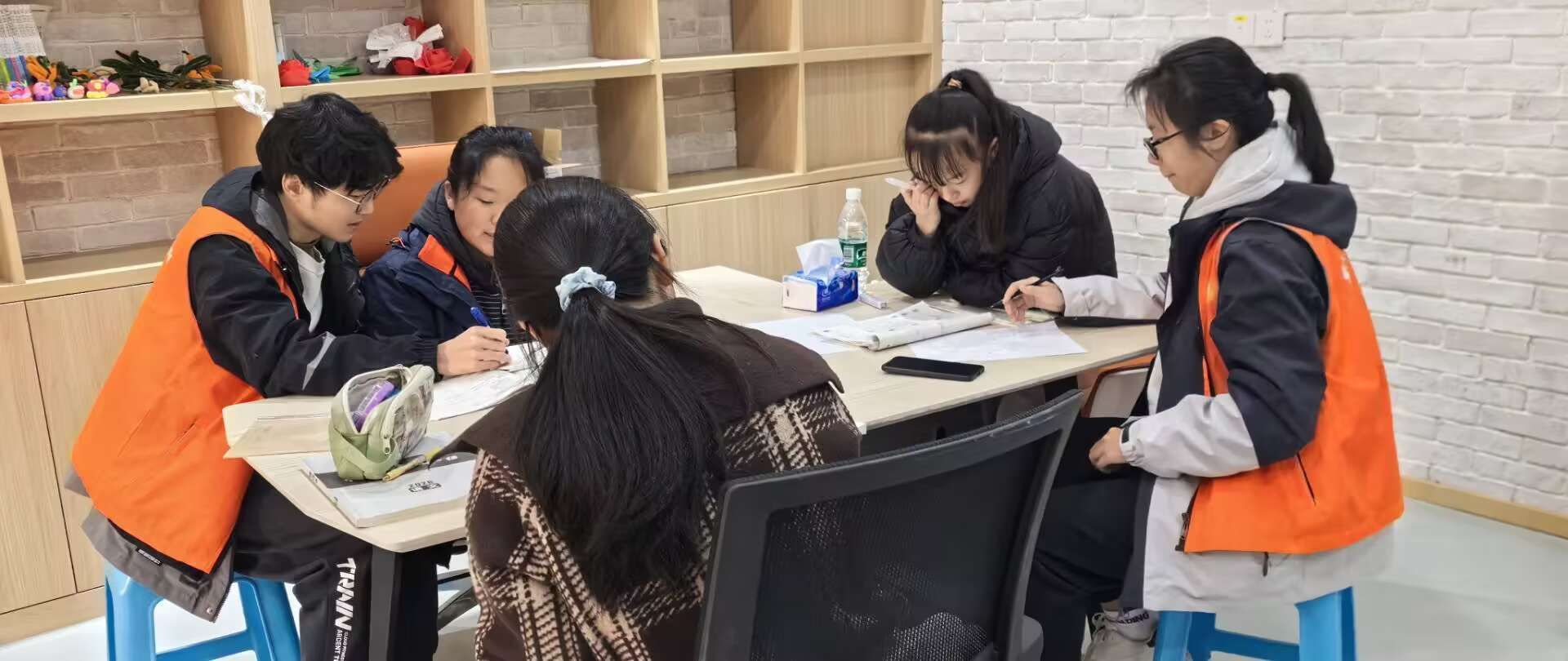 活动现场,身着橙色社服的志愿者们构成了社区中最温暖的色彩。他们俯下身子,耐心地为孩子们解答作业中遇到的疑难杂症,细致观察孩子们的解题逻辑,及时纠正错误认知,力求用最通俗易懂的语言帮助孩子们扫除知识盲区、确保学有所得。