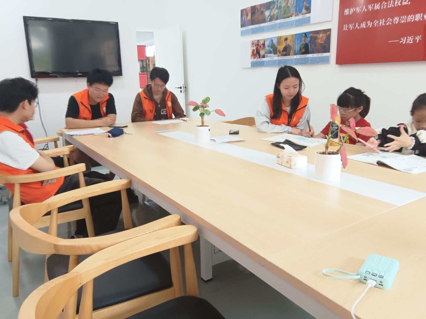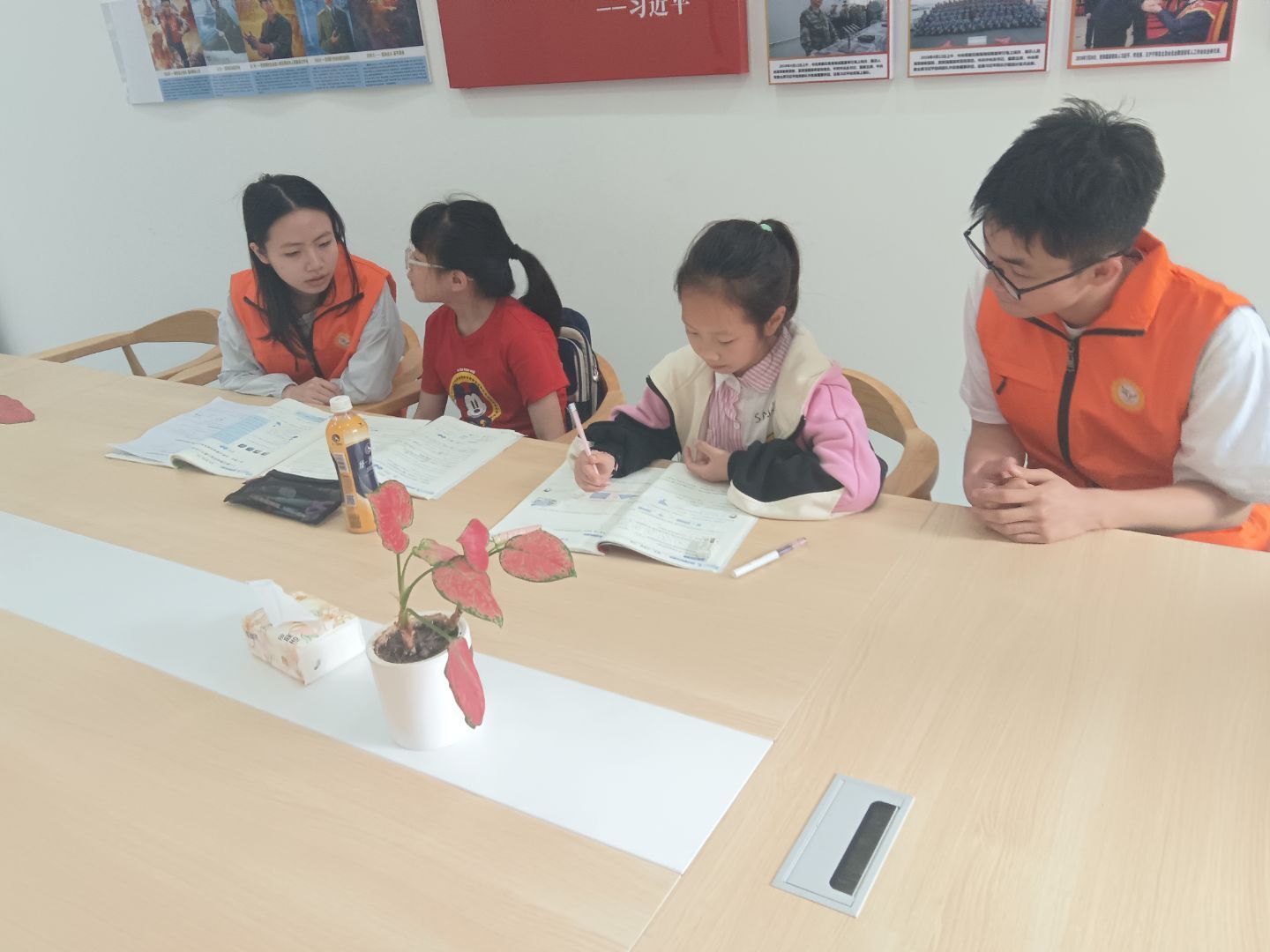 活动现场,身着鲜艳橙色社服的向阳志愿者们再次成为最温暖的风景。志愿者们针对小朋友们的学习进度进行了一对一的作业辅导。在安静的会议室里,志愿者与孩子们面对面坐下,耐心解答孩子们遇到的学习难题,不仅关注答案的准确性,更注重观察孩子的解题思路。