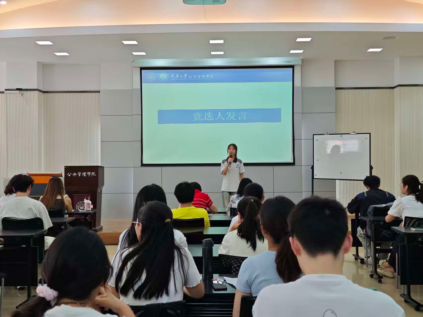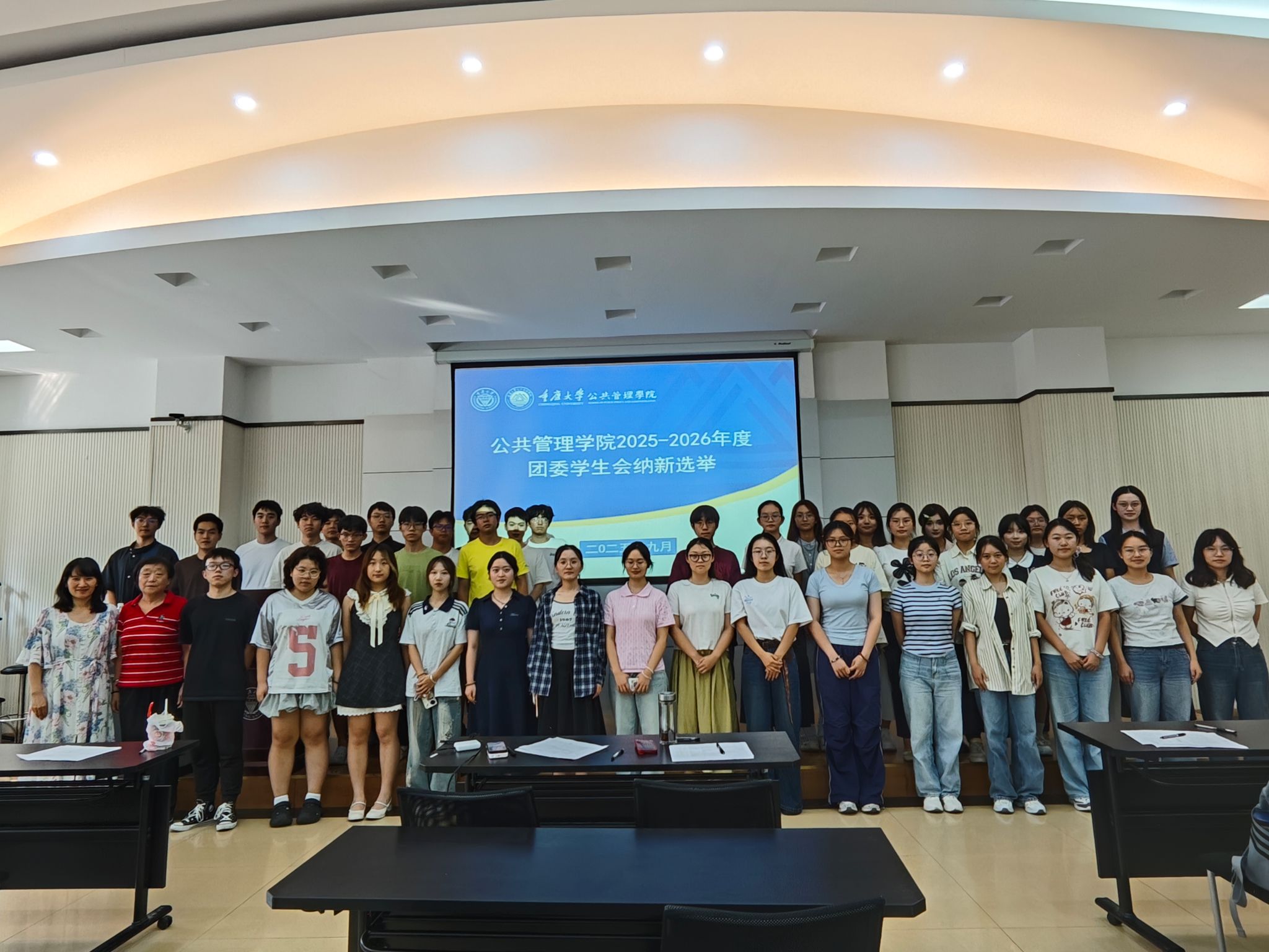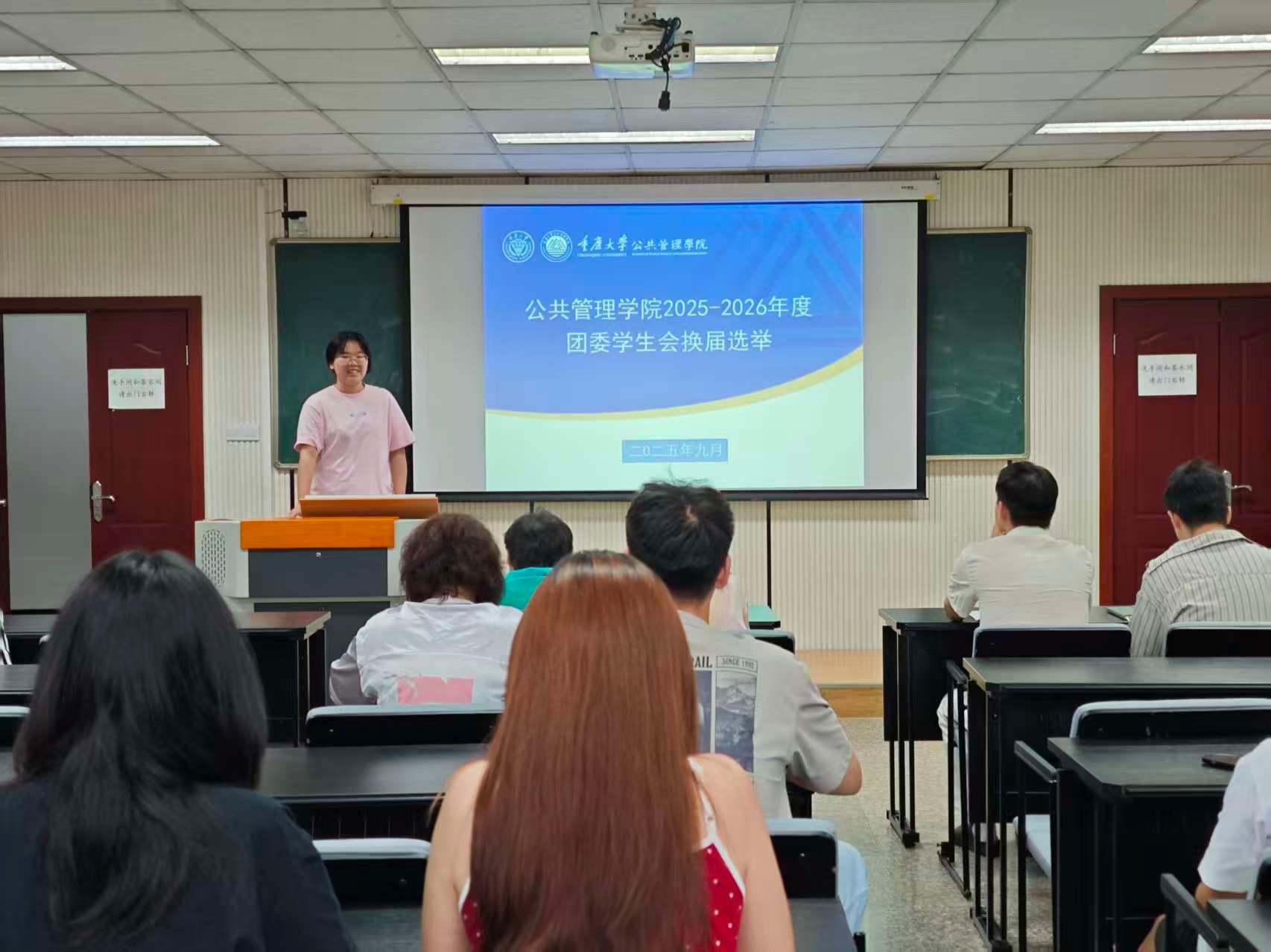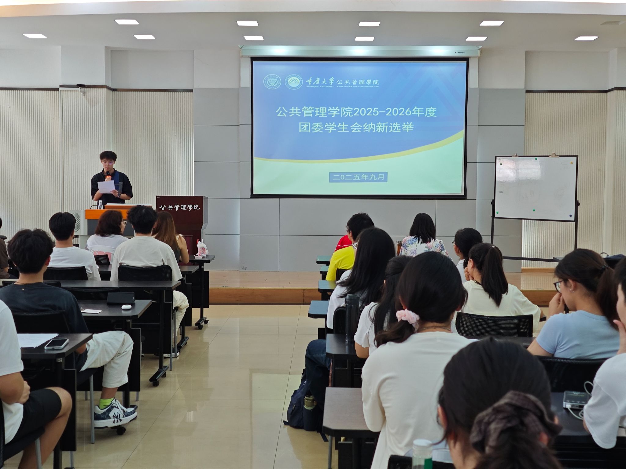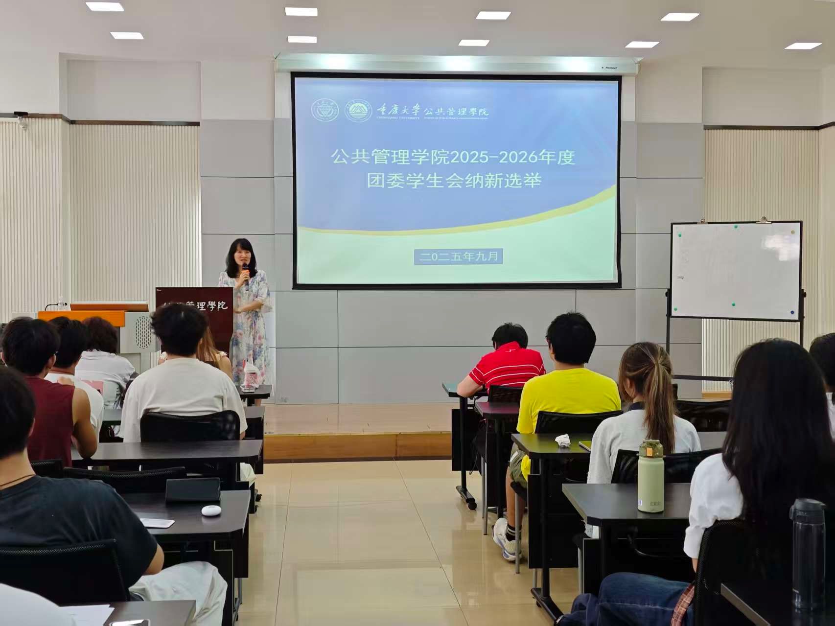 根据重庆大学校团委和校学生会相关指示,以及公共管理学院的实际工作安排,2025年9月16日至18日,学院本科生团委学生会 2025-2026学年换届与纳新竞选活动,分别在学院楼106教室、102教室顺利举行。本次竞选包括团委副书记、学生会主席团、部长换届,以及团委学生会各部门副部长纳新两个部分。学院学办主任兼22级辅导员王丽娟、团委书记兼24级辅导员徐柳、23级辅导员李庆到场参加,本科2022级团委学生会主席团成员担任评委,2023级团学成员参与换届竞选,2024级新生积极角逐纳新名额。