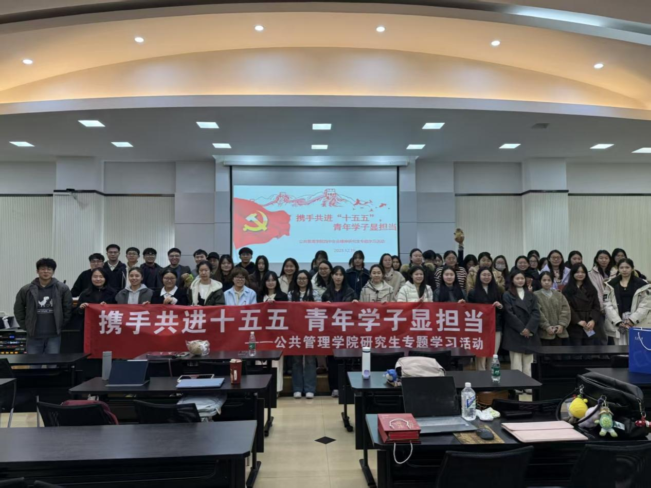 此次“携手共进‘十五五’,青年学子显担当”专题学习活动,通过理论学习与实践研讨相结合的方式,切实提升了研究生的政治素养与使命意识。未来,公共管理学院研团学将继续搭建优质学习平台,创新活动形式,引领广大青年学子在国家发展的宏伟蓝图中找准坐标,在奋斗中成长为堪当民族复兴重任的时代新人。