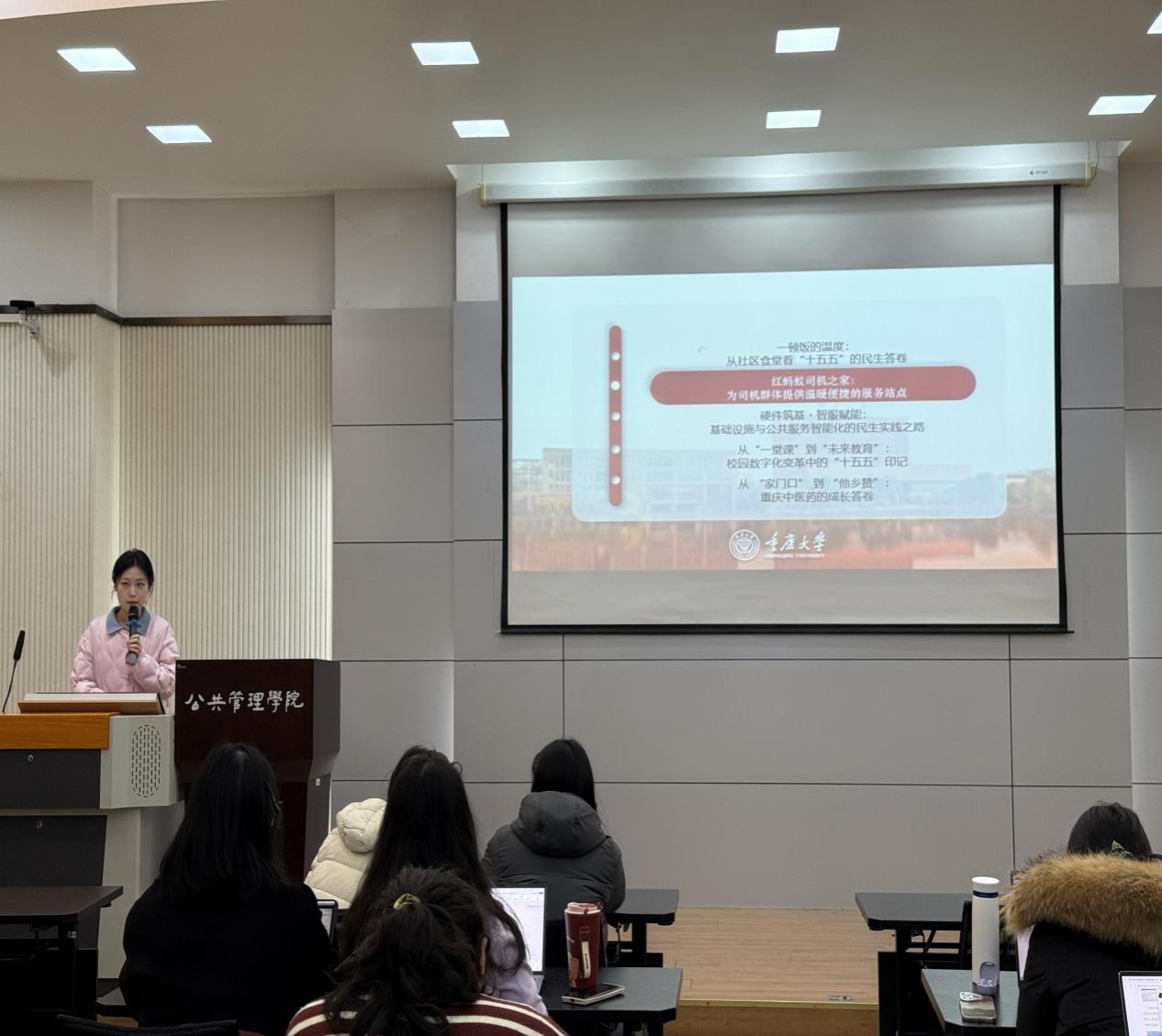 为深入学习贯彻党的二十届四中全会精神,引导研究生准确把握“十五五”规划的战略导向,将个人理想融入国家发展大局,2025年12月19日19:00,在重庆大学公共管理学院研团学组织部与实践部的精心策划下,“携手共进‘十五五’,青年学子显担当”研究生专题学习活动在公管学院102教室顺利开展。公共管理学院2025级研究生约70人到场,共赴一场理论与思想的洗礼。