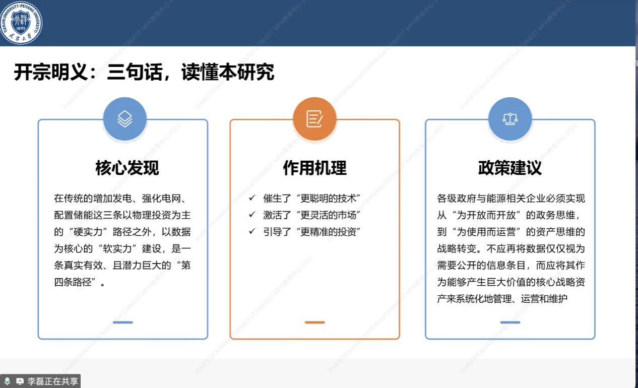 2025年9月29日,天津大学教授、博士生导师、国家社科重大项目首席专家,国家级重大人才计划学者,天津市哲学社会科学创新团队负责人,教育部高等学校教学指导委员会委员李磊应邀做客重庆大学“MPA大讲堂”,围绕“公共数据开放对城市能源韧性的影响”作主题讲座。该讲座由重庆大学公共管理学院王辉副院长主持,百余名师生通过线上方式共同参与,共享这场高水平的知识盛宴。